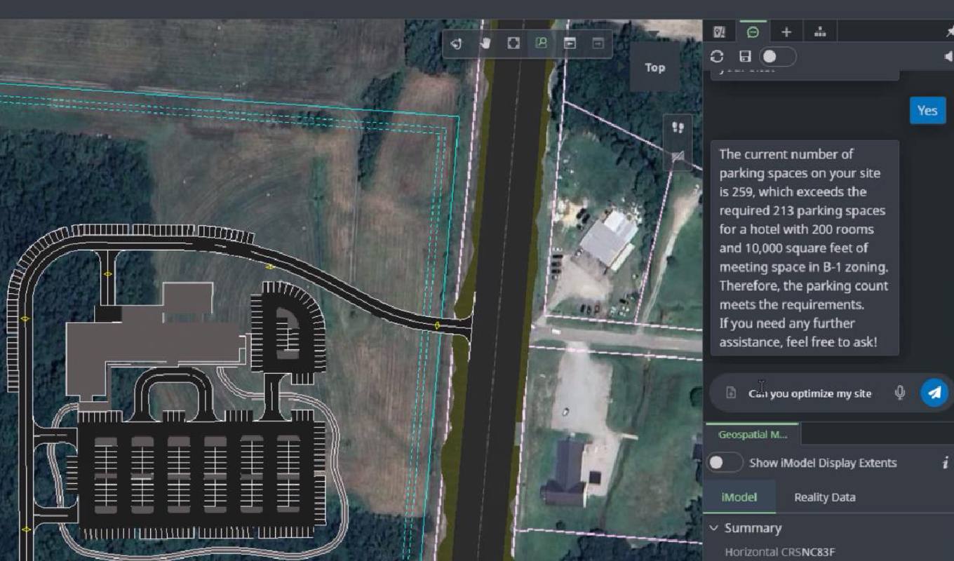 OpenSite+ di Bentley è la prima applicazione ingegneristica che sfrutta l'AI generativa per la progettazione di siti civili. Aiuta gli ingegneri a progettare rapidamente siti residenziali, commerciali e industriali con strumenti basati sull'AI, aumentando significativamente la produttività e la precisione.