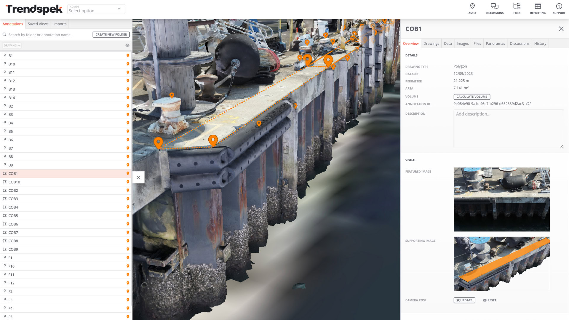 Trendspek identified a need for a digital-first approach: collecting high-fidelity data through robotics, drones, and water-based remotely operated vehicles, and converting it into detailed, engineering-grade models. This allows for accurate inspections without relying on risky or time-consuming on-site workflows.